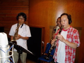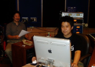 右はミキシングをやってくれたユーダイ≠ュん。サンハロンメンバーが何度失敗しても、暖かい言葉でミキシング、録音にお付き合いいただきました。感謝! |